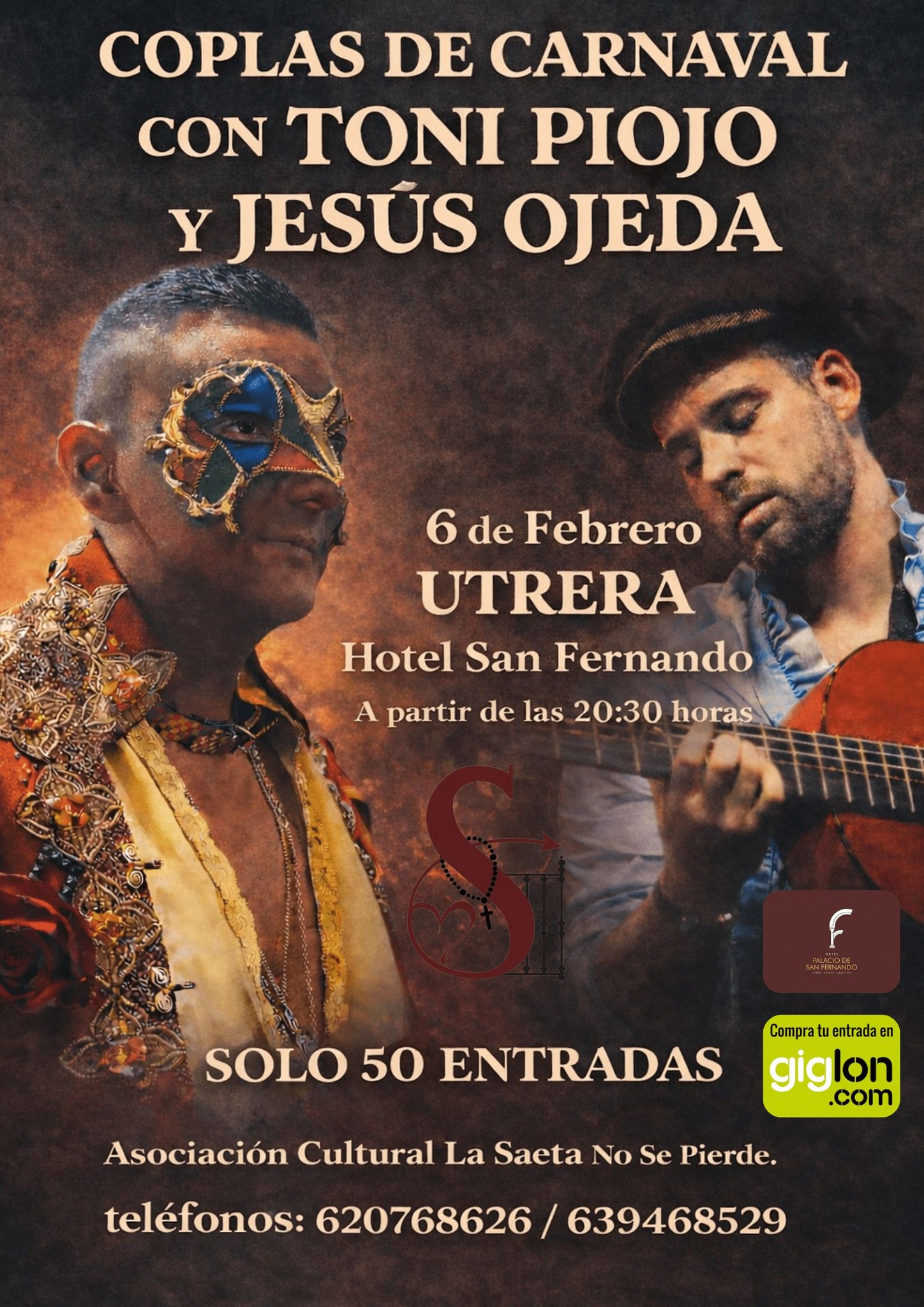 Hoy 6 de febrero, el Hotel Palacio San Fernando acogerá un concierto de coplas carnavaleras protagonizado por dos nombres de referencia del Carnaval gaditano: Toni...