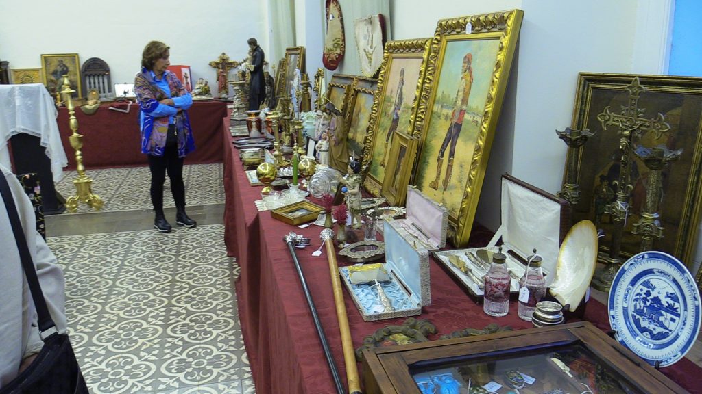 En el interior podremos encontrar todo tipo de artesanías, antigüedades en buen estado, cuadros, ropa, objetos de coleccionista, comida e incluso pasteles caseros de las Hermanas Carmelitas. Todo el dinero recaudado en el rastrillo irá destinado a Cáritas de Santiago y a la bolsa de Caridad de la Hermandad utrerana.