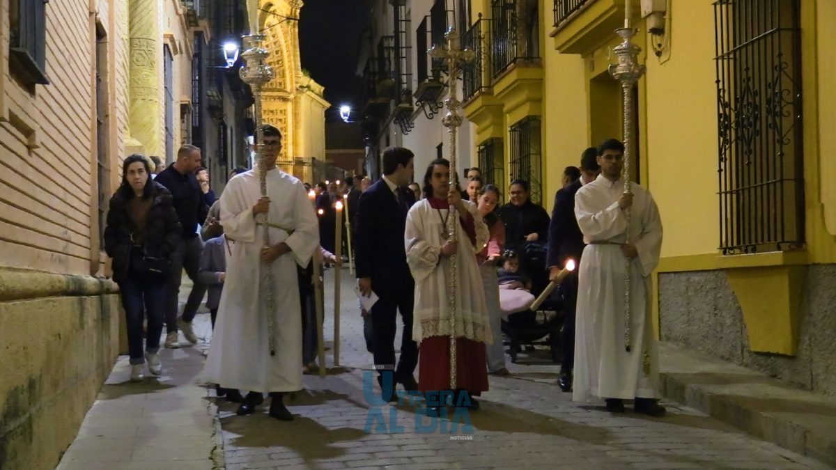 El recorrido, con hermanos de la Hermandad, representación de todas las hermandades de Penitencia y Gloria y acólitos, fue el siguiente: Sor Marciala, Santa Ángela, San Fernando, Marcos Pérez, Mota de Santa María, Rodrigo Caro, La Plaza, Perafán de Ribera, Ponce de León y Santiago, efectuándose el regreso a nuestra capilla.