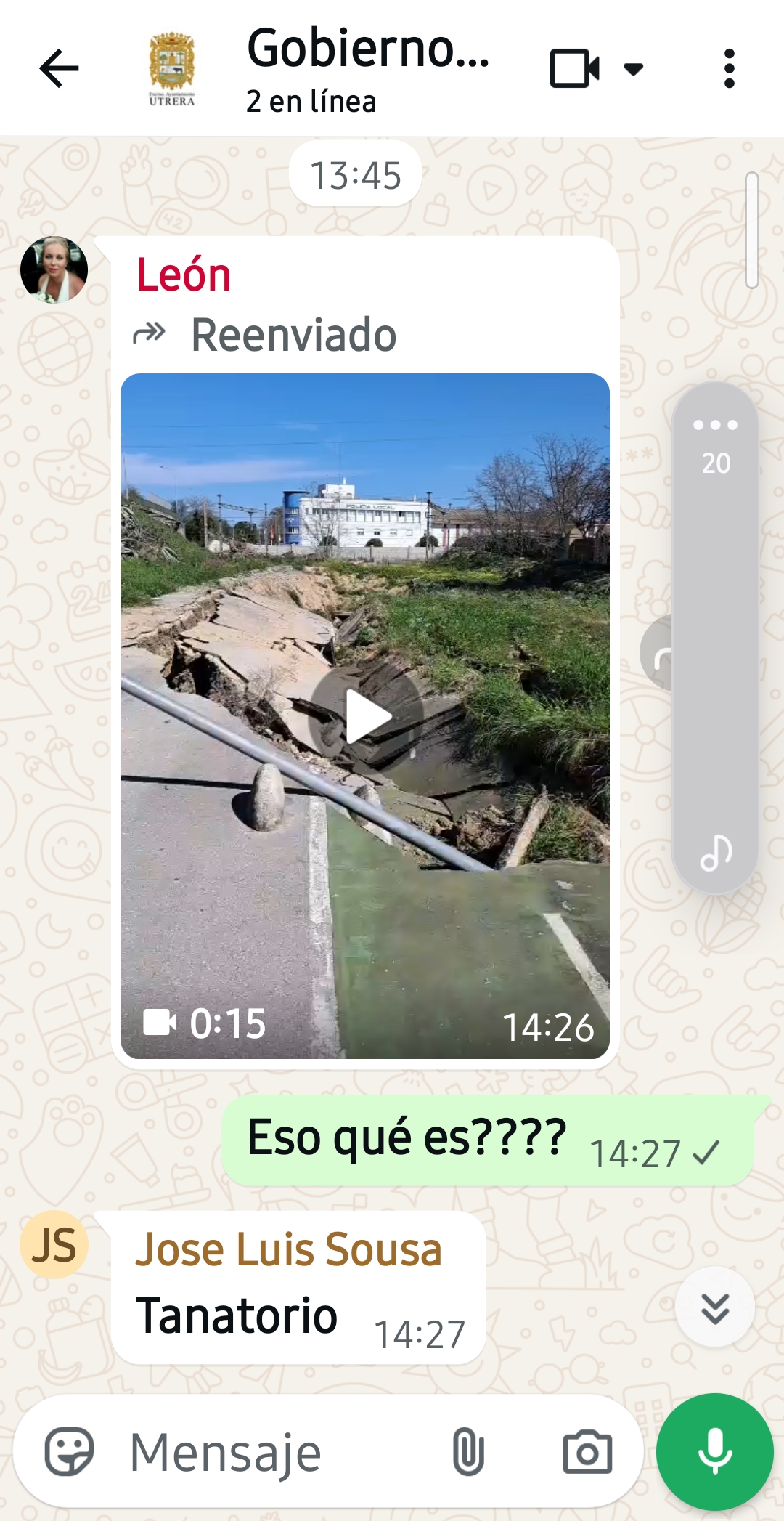 El Partido Popular de Utrera ha negado que el alcalde de la ciudad, Francisco Jiménez, insultara al portavoz del PSOE, José María Villalobos, durante el último Pleno municipal, tal y como han denunciado los socialistas en los últimos días. En un comunicado difundido este 4 de marzo, el PP sostiene que el comentario captado por un micrófono abierto no estaba dirigido al portavoz socialista ni al desarrollo del debate plenario, sino que se produjo en otro contexto. Según explican, el alcalde habría reaccionado en ese momento al recibir en su teléfono móvil la imagen de un nuevo socavón en la zona del Tanatorio, provocado por un hundimiento en el entubado.