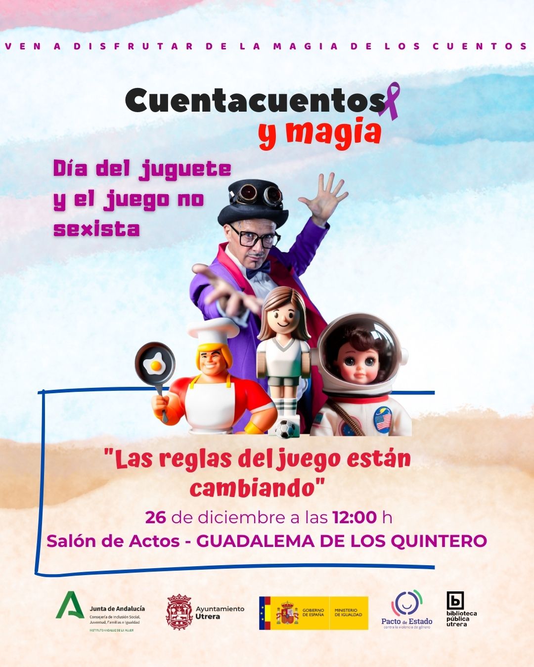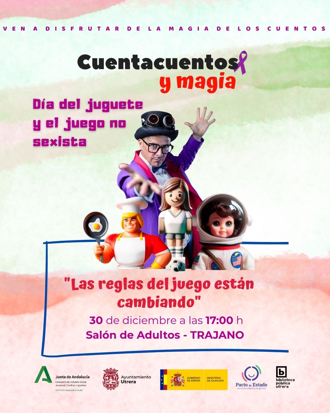 El Ayuntamiento de Utrera, desde la delegación de Bienestar Social e Igualdad, está desarrollando la Campaña del Juego y Juguete No Sexista y No Violento 2025, una iniciativa destinada a promover un nuevo modelo social basado en relaciones de corresponsabilidad, respeto y colaboración en igualdad entre mujeres y hombres, desde la infancia. Desde el Consistorio se apuesta por un modelo de juego que eduque en valores, alejándose de estereotipos de género y de contenidos violentos. Los juguetes y juegos no son neutros, debido a que influyen en la construcción de la identidad, en la forma de relacionarse y en la percepción del mundo de niños y niñas. Por ello, esta campaña invita a reflexionar sobre el papel del juego como una herramienta clave para inspirar, educar y fomentar una sociedad más justa e igualitaria.