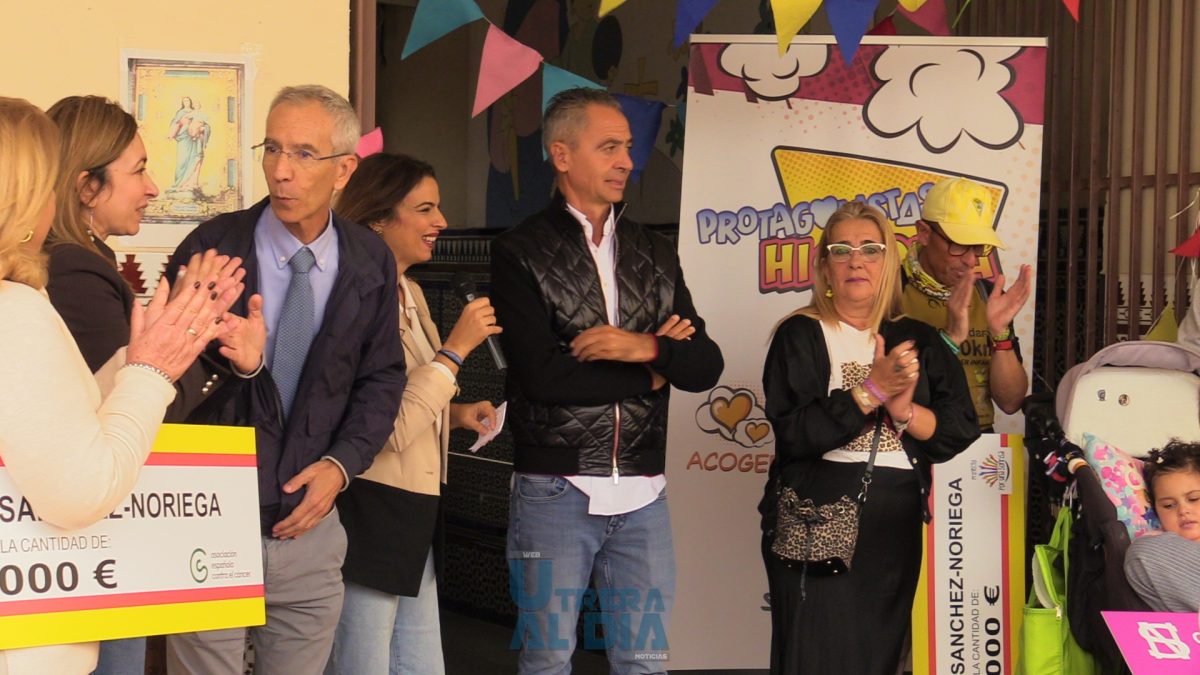Durante el acto, presentado por Ana González, se vivieron momentos de gran emoción, especialmente cuando el empresario utrerano Manuel Sánchez Noriega anunció tres importantes donaciones: 9.000 euros para la asociación “Por una sonrisa”, que destinará los fondos a su Semana Mágica, una iniciativa que regala vacaciones a niños con cáncer y sus familias. También 3.000 euros para la Asociación Española Contra el Cáncer (AECC) de Utrera, cuya presidenta Katy Pérez agradeció visiblemente emocionada “el gesto que hace posible seguir avanzando hacia un 70% de curación en 2030”.