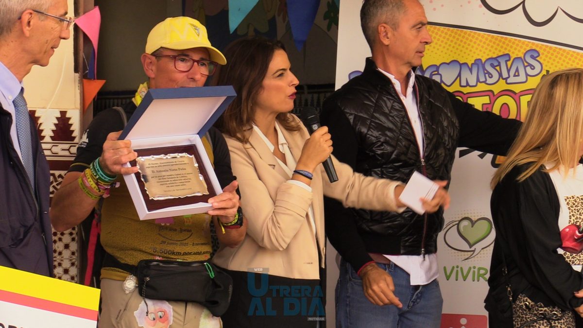 Ambos se conocieron durante el Camino de Santiago, momento el que el utrerano se tropezó con José Antonio «haciendo el recorrido al revés» y ahí explicó el por qué corría. «En los 5.500kms que llevo, no he recibido ningún recibimiento como el que me dais en Utrera», aclaraba Nieto, «es de agradecer que siempre apoyéis a la asociación, poquito a poco he ido dando pasos para llegar hasta Ubrique, me quedo con los recuerdos de ayudar en todo lo que puedo, pese a las lesiones que sufrí en verano».