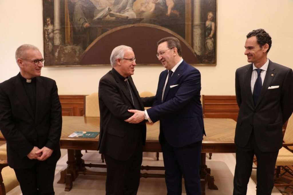 El acto de firma contó con la presencia del arzobispo hispalense, José Ángel Saiz Meneses; el decano de la Facultad de Teología, Manuel Palma; el patrono de la fundación, Sergio Sierra; y el presidente de la entidad, Antonio Cerdera del Castillo.