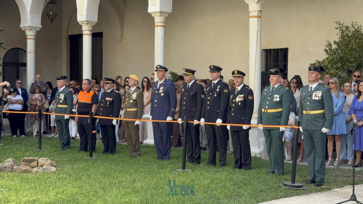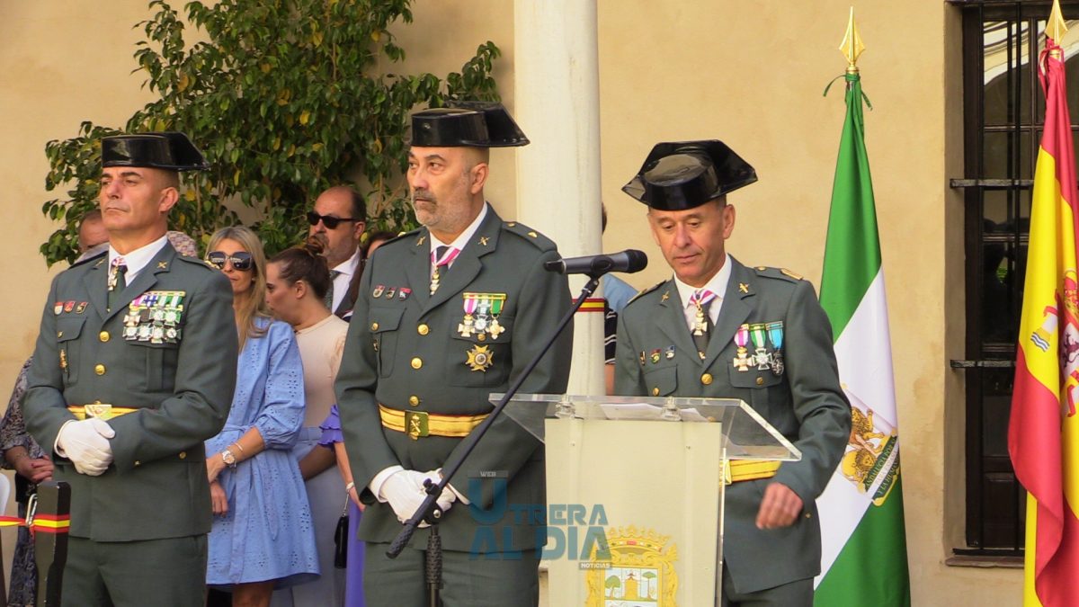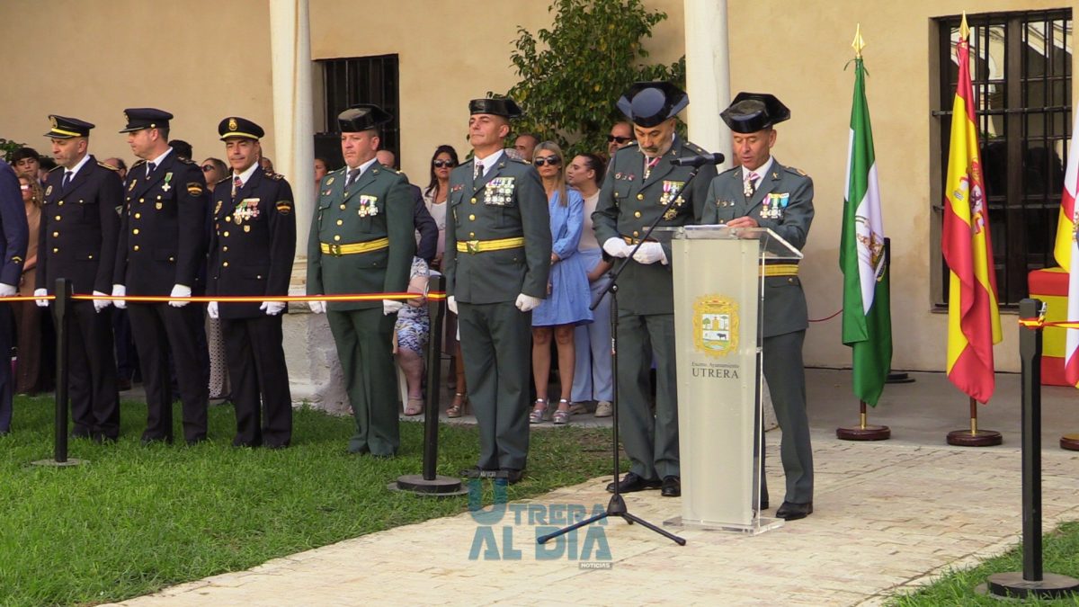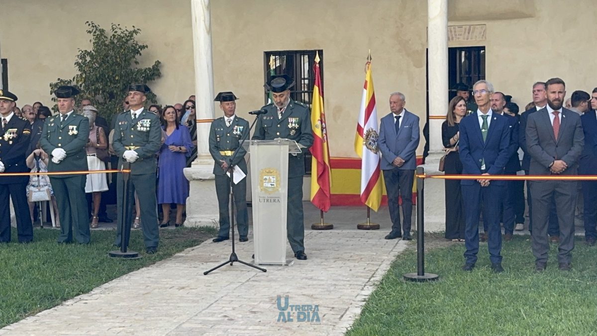El Comandante Jefe Interino de la Compañía de Utrera, Diego Francisco Morilla Ramos, presidió el acto y dirigió unas palabras a los asistentes. El Comandante destacó la celebración del 110 aniversario de la proclamación de la Virgen del Pilar como Patrona del cuerpo, además de los 182 años de la fundación de la Guardia Civil, así como poner en valor el trabajo y esfuerzo que los miembros del cuerpo de la Guardia Civil dedican en su día a día.