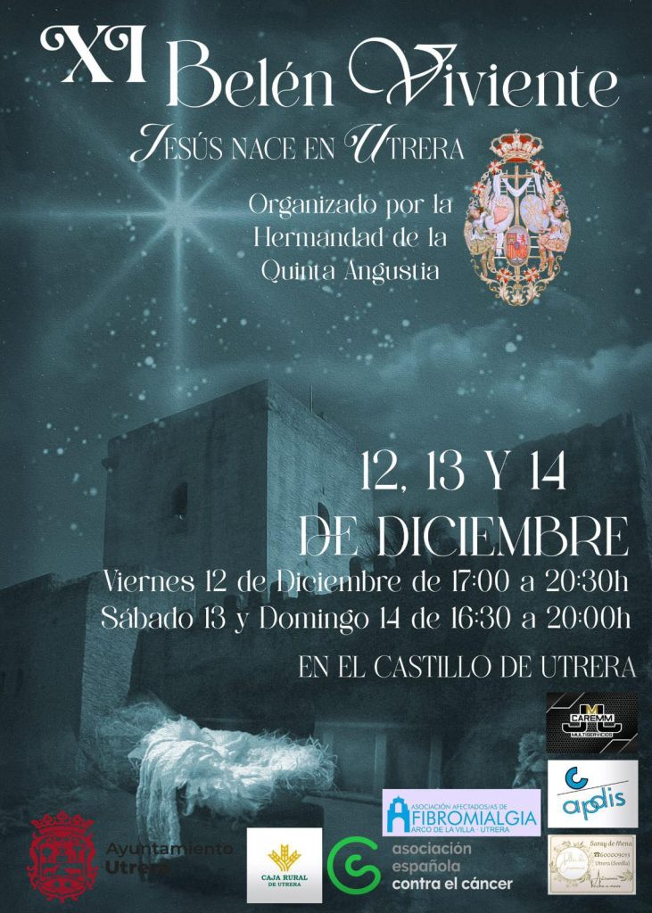 Un año más, el patio de armas del Castillo de Utrera se convierte en el escenario mágico donde la historia más hermosa vuelve a cobrar vida. La Hermandad de la Quinta Angustia abre sus puertas para celebrar la undécima edición de este acontecimiento que ya es tradición, cultura, fe y encuentro para miles de familias. La inauguración será este viernes 12 de diciembre y continuará abierto al público el 13 y 14.