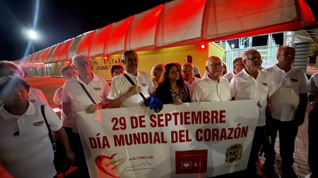 El pasado 29 de septiembre se celebraba el Día Mundial del Corazón, pero por motivos meteorológicos en nuestra ciudad, la Asociación utrerana del corazón encabezada por su presidente Joaquín García, leía su manifiesto conmemorativo a las puertas del estadio San Juan Bosco iluminado en rojo para la ocasión, este pasado martes 30 de septiembre. En la lectura estuvieron presentes miembros de la asociación y la delegada de sanidad Consuelo Navarro. Además del estadio también se iluminó la plaza Ximénez Sandoval donde se encuentra el monumento a Fernanda y Bernarda.