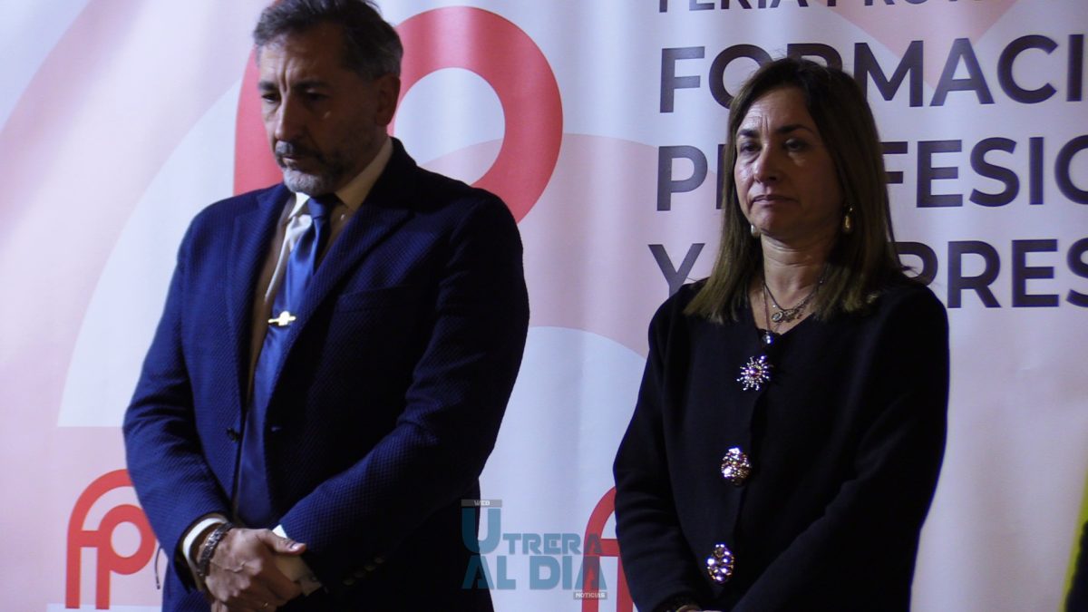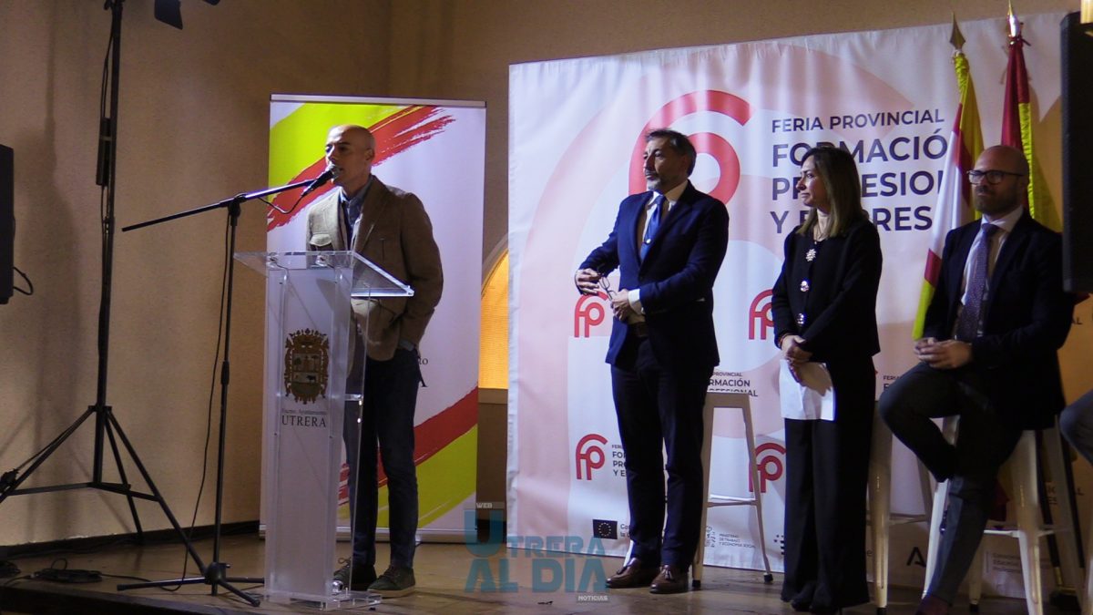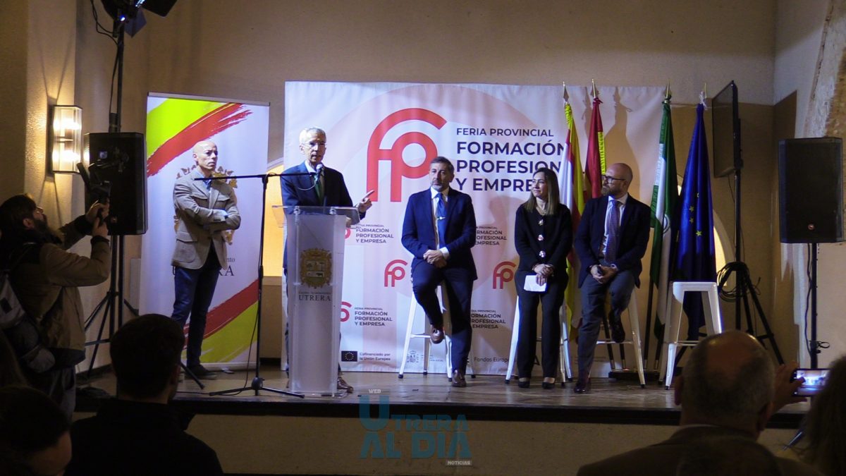 La programación ha dado comienzo con el acto inaugural de la Feria, que ha contado con la participación del alcalde de Utrera, Francisco Jiménez Morales; la delegada de Empleo y Formación, Isabel González Blanquero; el delegado de Educación, Francisco Arjona Méndez; y el secretario general de Formación Profesional de la Junta de Andalucía, Florentino Santos.