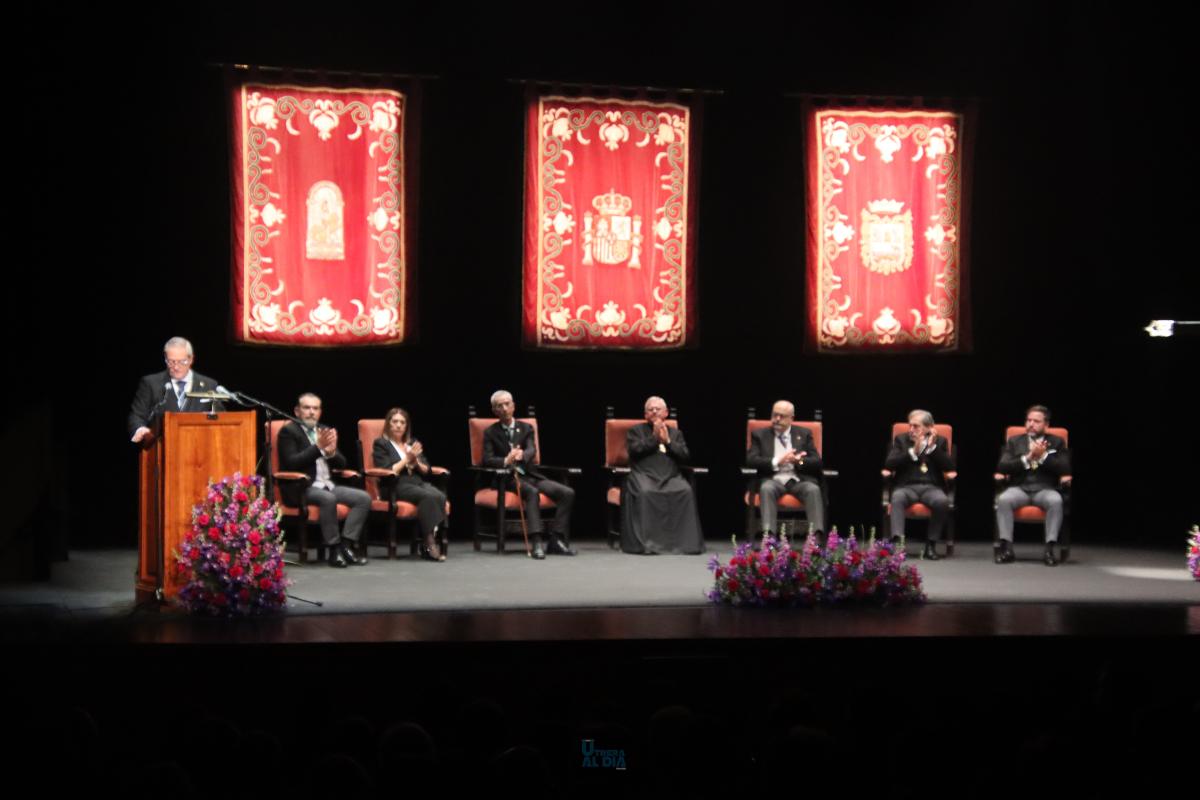 Con esto, todo el teatro se puso en pie para aplaudir y alabar su fervor y emoción en un Pregón que no dejó indiferente a nadie y que seguía resonando en la mente los presentes incluso mientras sonaba los himnos de Andalucía y España para cerrar el acto tras dos horas y cuarto de Pregón.