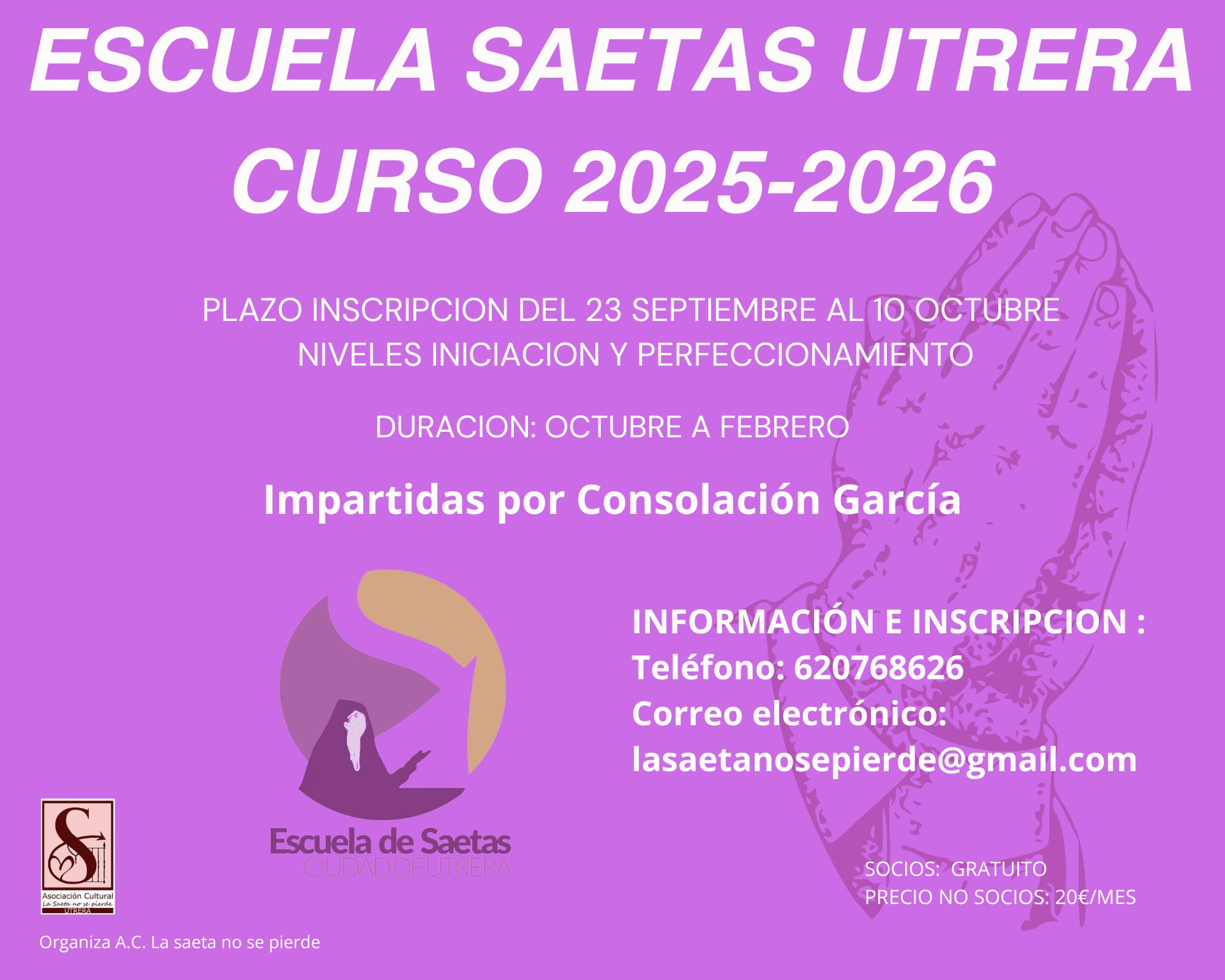La Asociación Cultural “La Saeta No Se Pierde” finaliza su plazo de inscripción para el próximo curso 2025/2026 de la Escuela de Saetas Ciudad de Utrera, una iniciativa...