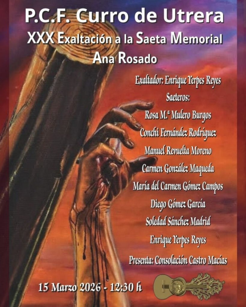 La Peña Cultural Flamenca Curro de Utrera celebra la XXX Exaltación a la Saeta, una cita dedicada a este canto tan ligado a nuestra tradición y a la Semana Santa, en honor a Ana Rosado,...