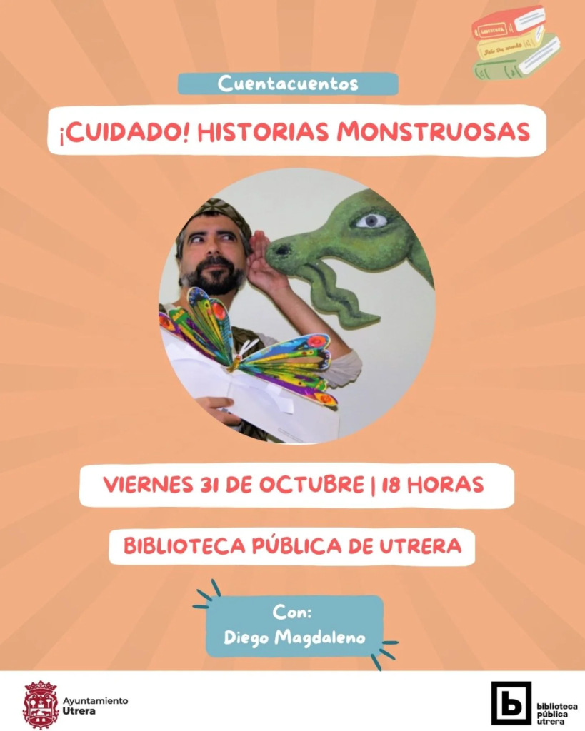 La Biblioteca Pública de Utrera celebrará este viernes 31 de octubre, a las 18:00 horas, una actividad muy especial para toda la familia: el cuentacuentos “¡Cuidado! Historias...