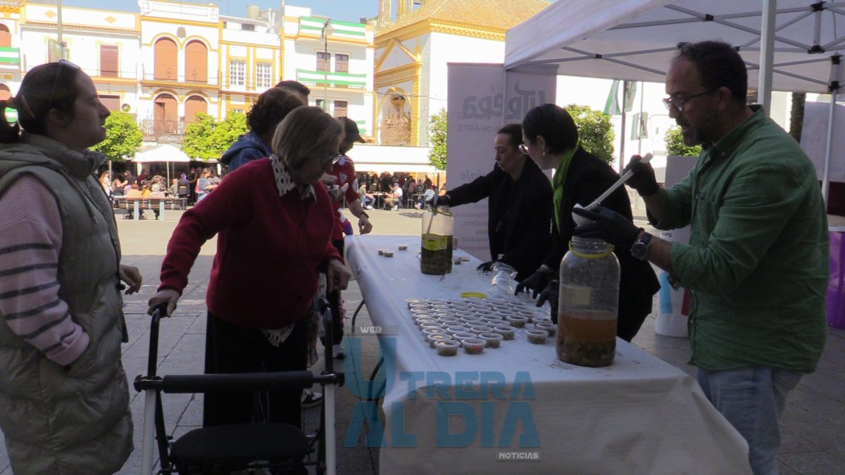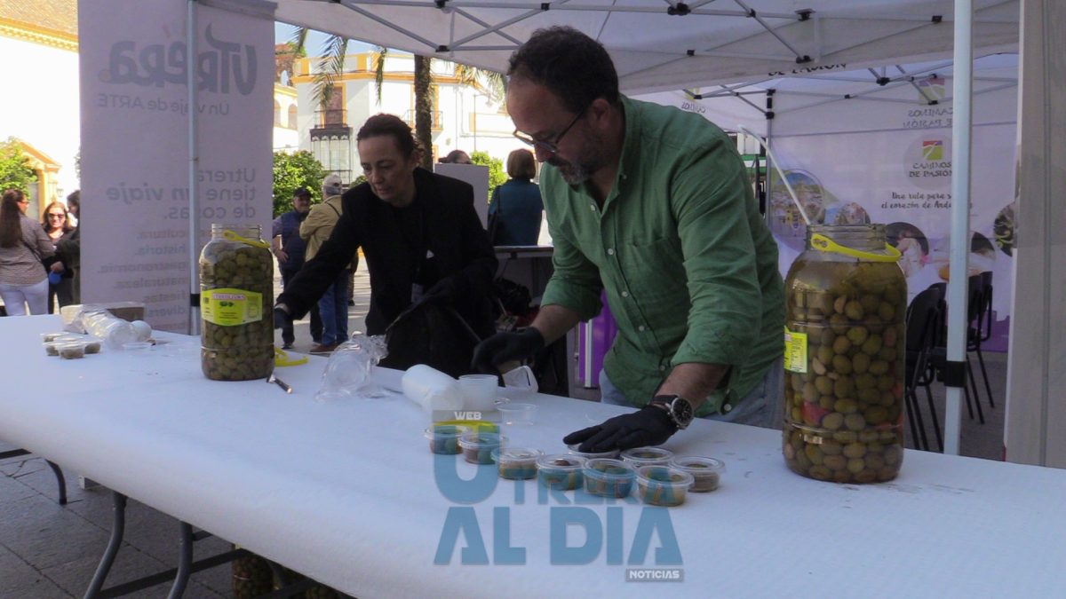 A las 13:00 horas hubo una degustación de aceitunas gordales y, a las 16:30 horas, de dulces de las pastelerías Cordero, Reyes y bares del centro, por parte organizativa del consistorio utrerano. También se pusieron proyecciones de imágenes de la Semana Santa utrerana entre otros recursos turísticos del municipio.
